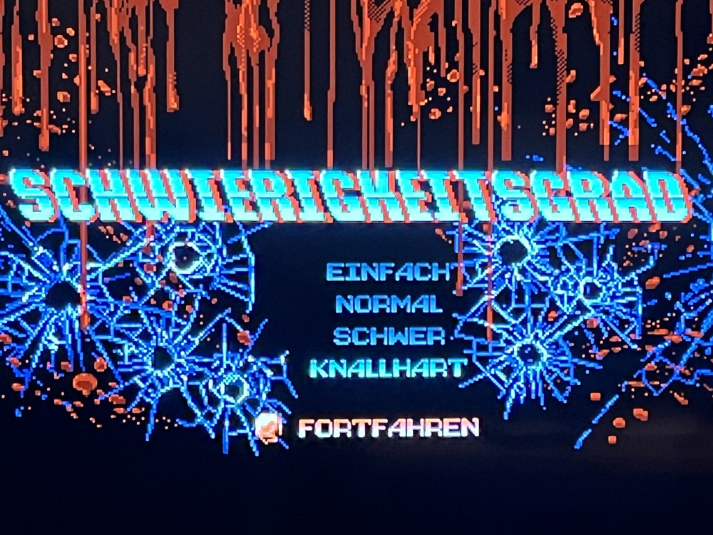 Dieser martialische Screen, von mir stilecht und neandertalerhaft vom Fernseher abfotografiert, wurde mir am Ende von HUNTDOWN angezeigt.